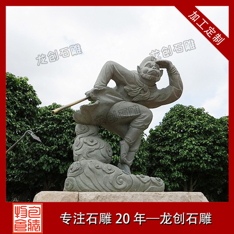石雕 悟空:他天敏,思想跟行動(dòng)都如風(fēng),學(xué)得一身高強(qiáng)的,吹一口氣,就能夠七十二變,并且有法寶金箍棒,縮小如針,放大如銅棒,筋斗云一駕,就能夠上天下地。悟空仍有猴性,他精明頑皮,愛作弄。