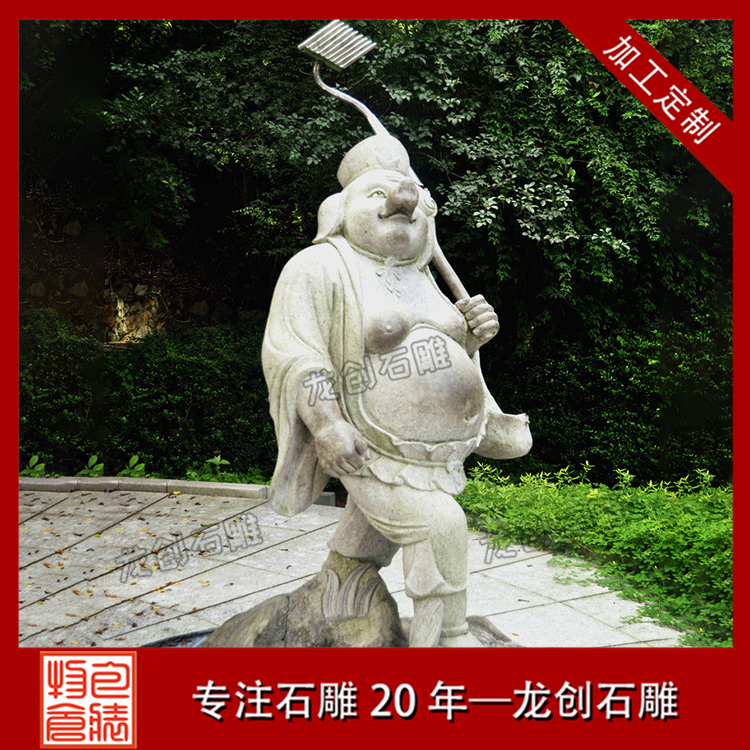 石雕豬八戒:八戒好吃懶做,貪財(cái)好色,貪生怕死,但又性格溫和,憨厚單純有時(shí)也很英勇;經(jīng)常被妖怪的美色所迷,難分?jǐn)澄摇K麑?duì)師兄的話言聽計(jì)從,對(duì)師父忠心耿耿,為唐僧西天取經(jīng)立下汗馬功勞,是個(gè)被人們喜愛同情的喜劇人物。