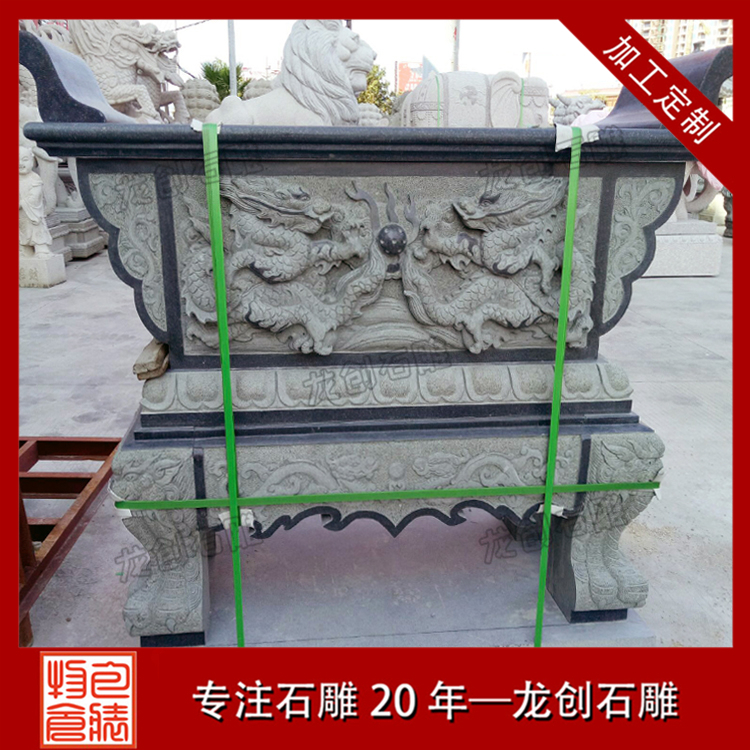 石雕供桌,是祭祀時常供設香爐、蠟竿和擺放供品的桌子。常見于廟宇、祠堂、家宅、公司等地。在我們佛教信徒的每家都有的一種禮器,在過去人們都會供奉祖先,需要使用供桌擺放供品。但是如果其上擺放了神像或先祖牌位,就不能當做普通家具使用了。