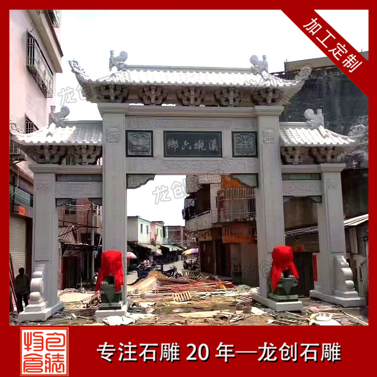以上分享的石牌樓是中式典型的三門四柱石牌樓造型,作品結構緊密,設計精巧,款式古樸,是古建景區,宗教寺廟,村莊入口常用的景觀擺件。惠安龍創石雕支持定制各種樣式的石牌樓、石牌坊,專注石雕20年,匠心制作,自有礦山,價格實惠。