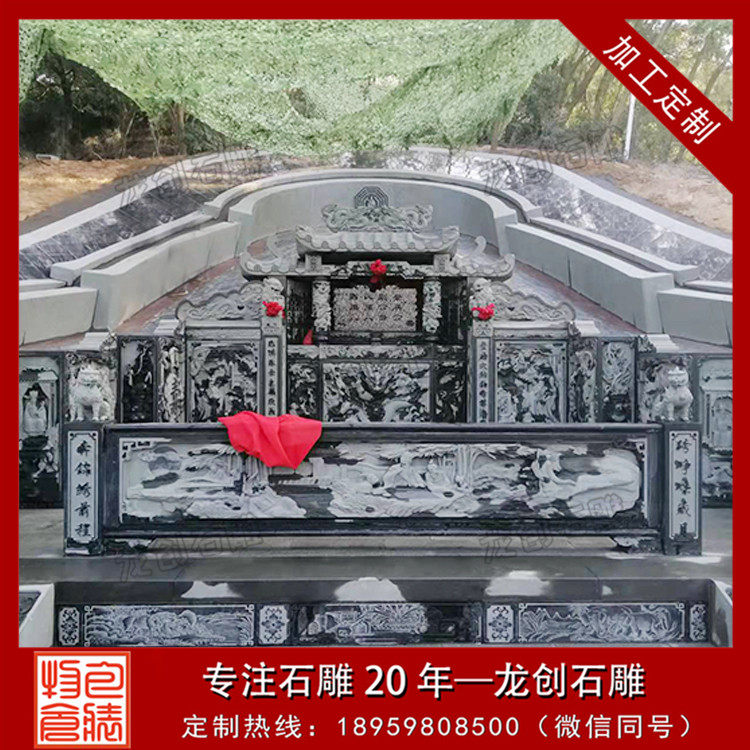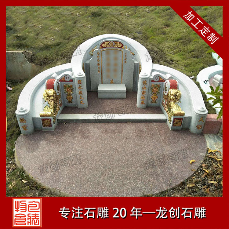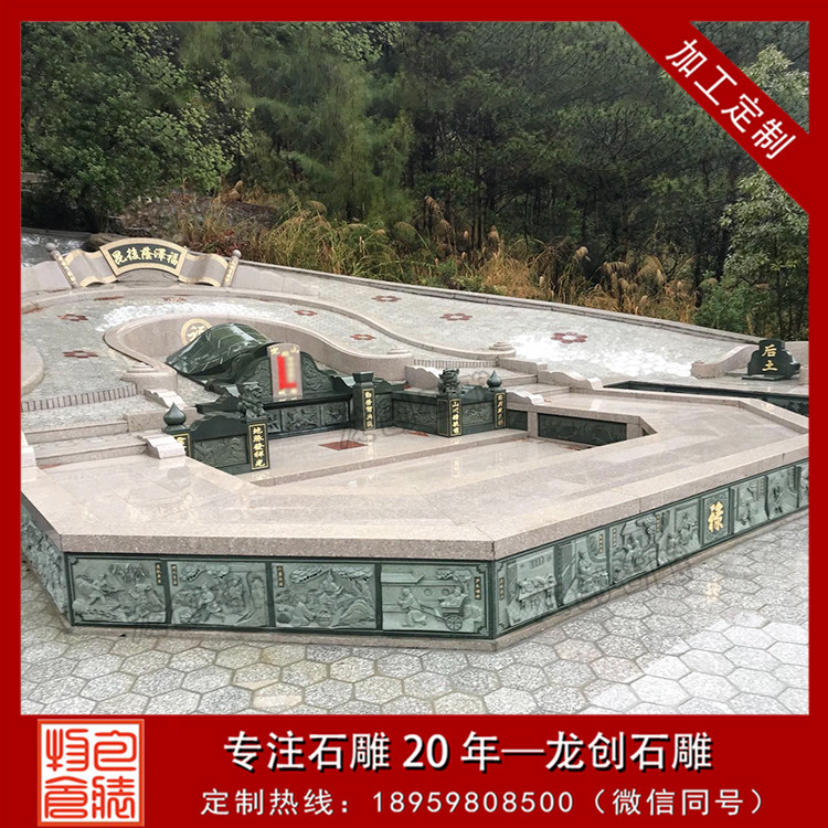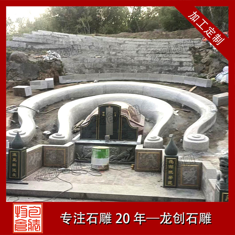 設計方面,融入豐富文化元素。雕刻圖案是重要一環,龍鳳象征尊貴吉祥,常用于家族顯赫者的墓地;蓮花代表純潔超脫,在許多墓地都能見到;二十四孝圖則傳遞著孝道文化。造型上,傳統中式以飛檐、斗拱元素體現莊重;現代簡約風格用流暢線條展現簡潔大氣。