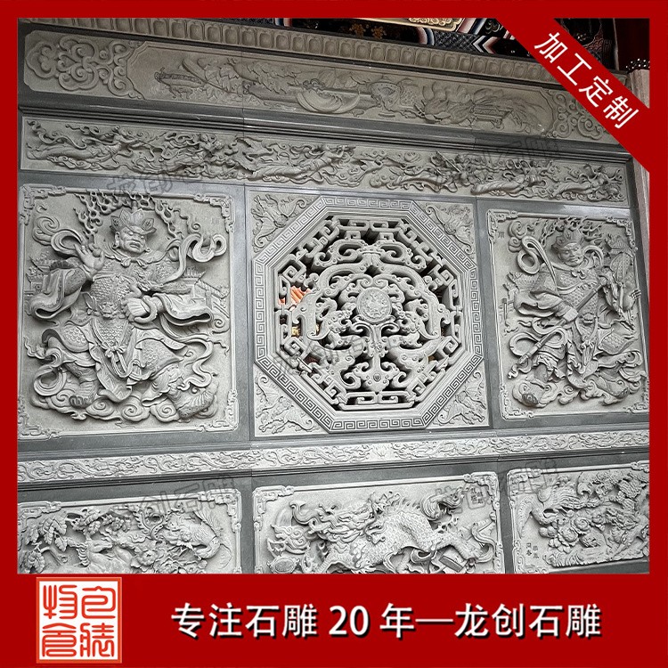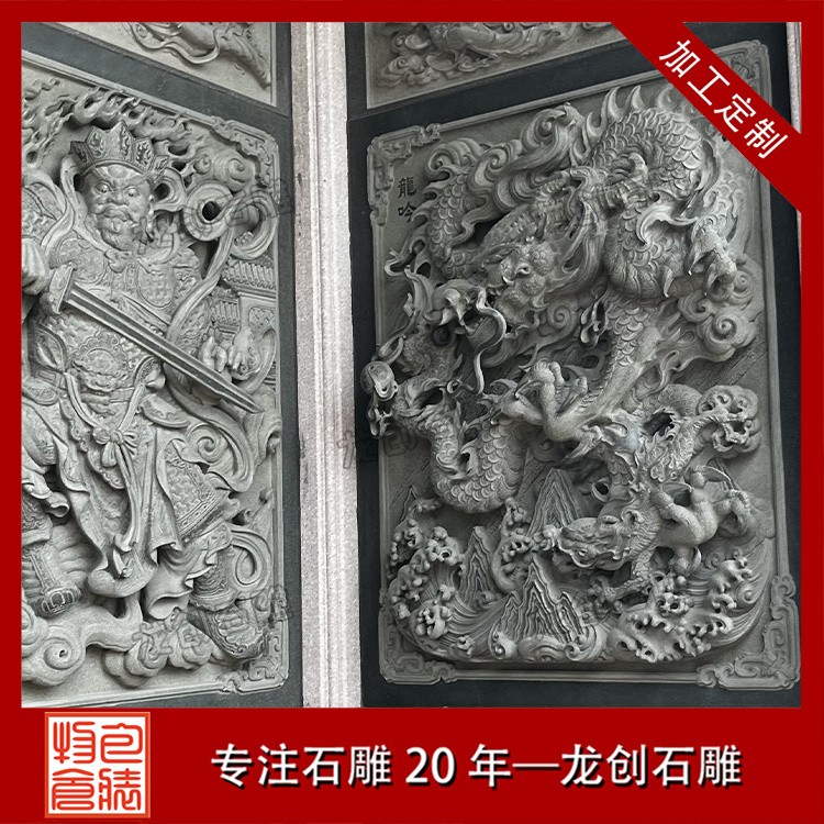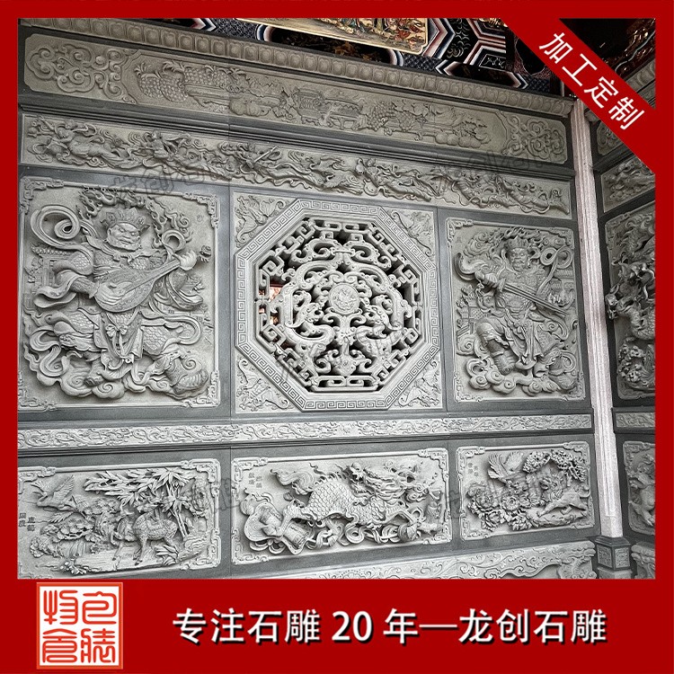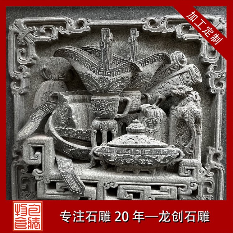 在工藝技法上,這類浮雕注重平面構圖向立體空間的轉(zhuǎn)換。采用寫實與寫意相結(jié)合的表現(xiàn)手法,花朵枝葉的形態(tài)力求準確,而整體布局則講究虛實相生。雕刻時通常分三個層次處理:遠景層淺刻勾勒,中景層適度凸起,近景層重點刻畫。特別是禽鳥的喙眼、花瓣的翻卷、葉片的脈絡等關鍵部位,通過精細的刀工呈現(xiàn)出生動的細節(jié)質(zhì)感,使堅硬的青石呈現(xiàn)出柔美的自然氣息。