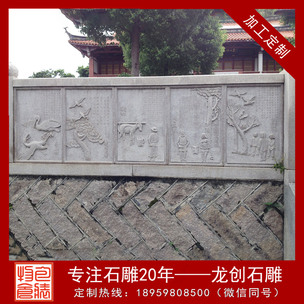 石材浮雕是將精巧的圖案雕琢在石材外表,美觀大方,且極富平面感。石材浮雕作為一種人們本人設計創作并雕琢的手工工藝品,是最古老的文化,并留給我們現代人豐厚的歷史文化藝術遺產。在大型浮雕制作中它一直用共同的手法和行為藝術方式來豐厚著人們的文化歷史。