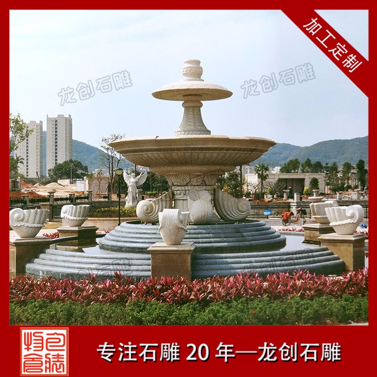 園林景觀石雕噴泉水缽雕塑是一種石材做成的盆狀或者罐狀的石雕作品,一般來說周邊有雕刻的紋路以及雕刻的附加飾品,然后組合成一個比較大的裝水,儲水的容器,并且部分石雕噴泉雕塑利用水壓把水從石雕噴泉雕塑的上端噴或者流出,形成一種特別的景象的石雕產品。石雕噴泉雕塑作為一種裝飾產品,所以一般適用于比較高檔的裝飾,不過隨著社會的發展,現在的水平高中低檔的價格可以滿足不同客戶的需求,從高端裝飾慢慢的成為了家居擺件,公司擺件,公園擺件,景區擺件等等。