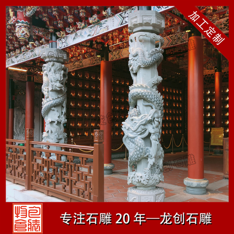寺廟的建筑中必不可少的其中一定有龍柱石雕,已經成為寺廟的標配。當然也有資本相對差一些的寺廟會用圓柱替代,但更換成龍柱石雕也是遲早的事情。香火好的寺院不管是大雄寶殿還是天王殿或是其他殿門前,都會立上幾對龍柱。龍是中華民族的圖騰吉祥的征兆。宗教文化的發展是為了守護一部分人的信仰,也豐富人們的精神生活。宗教場所的存在,可以讓人們從中得到一些心理慰藉促進社會和諧。