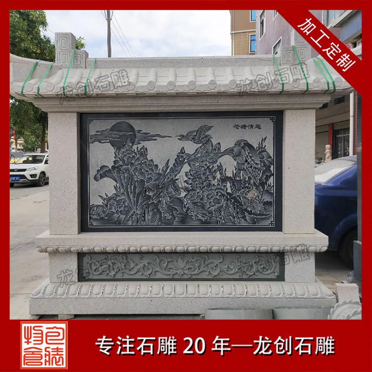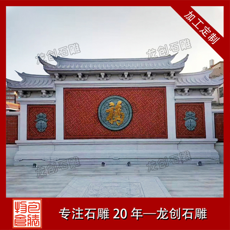 石雕照壁的樣式豐富多樣,根據(jù)歷史時(shí)期、地域特色和審美需求等因素,可以大致分為壁頂式、浮雕式、文字式、鑲嵌式和彩繪式等。每種樣式都有其獨(dú)特的美感和寓意,為場(chǎng)所增添了裝飾效果,也傳遞著人們對(duì)美好生活的向往和追求。