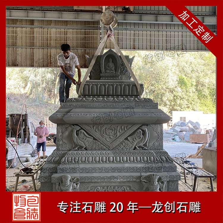 雕刻工藝環節,更是匯聚能工巧匠的心血。經驗豐富的雕刻師們憑借手中的鑿與錘,將設計理念精準地鐫刻于石材之上。他們熟諳各種雕刻技法,無論是高浮雕的立體感塑造,還是淺浮雕的細膩紋理呈現,亦或是線刻的精致勾勒,都能運用自如。在雕刻過程中,嚴格遵循既定的工藝規范與質量標準,對每一個雕刻深度、每一處線條銜接都精益求精,以毫米級的精度要求,確保石塔的每一寸肌膚都散發著藝術的光輝。