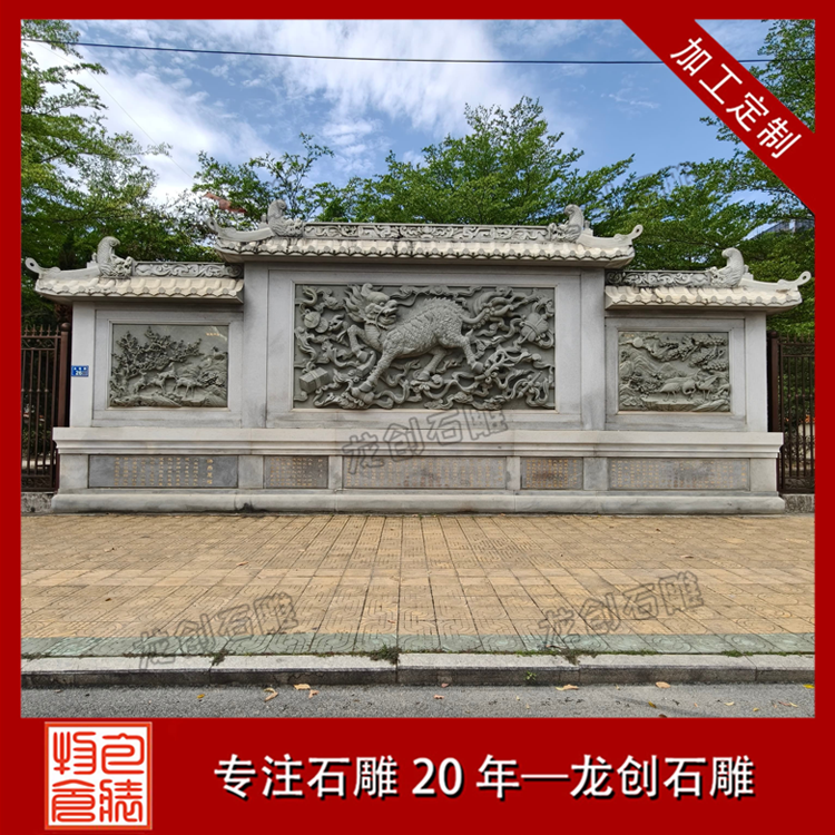 照壁雛形可追溯至漢代,早期為宮苑貴族專用;唐宋漸入寺院、官??;明清普及至民間宗祠、大院與園林,成為身份與家風(fēng)的載體。由壁座(須彌座 / 素座,承重)、壁身(主體,雕刻核心區(qū))、壁頂(仿傳統(tǒng)屋頂,歇山 / 硬山 / 懸山,防雨水侵蝕)三部分組成。