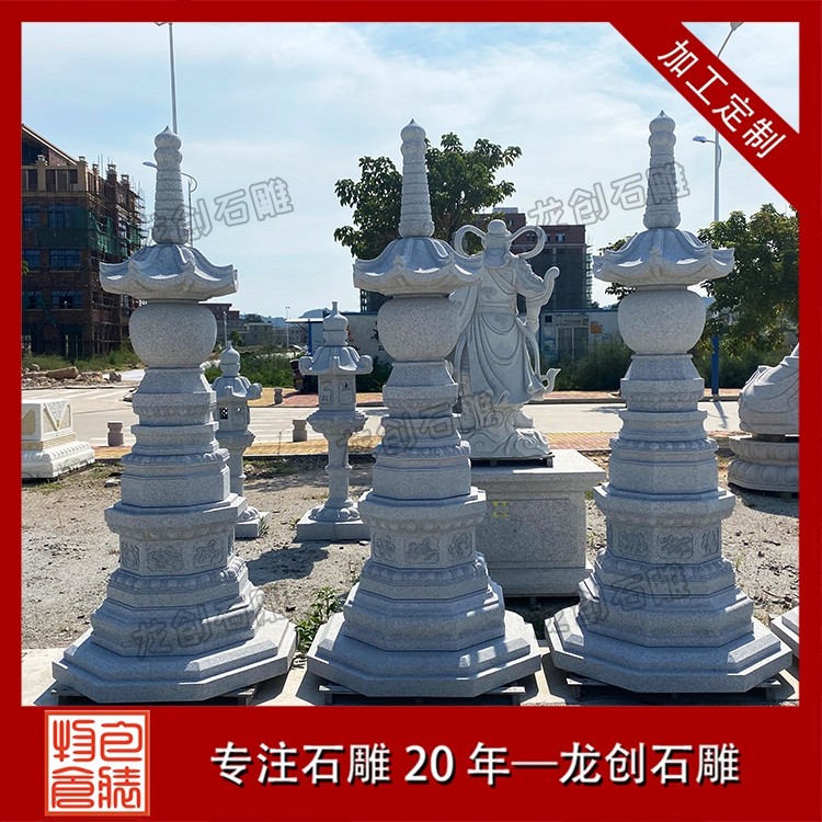 專為寺廟場景打造的雕刻石塔,更注重宗教內涵與藝術表現:經幢塔:刻有經文咒語,供信眾繞行祈福;舍利塔:供奉高僧舍利,造型精致莊重;鎮寺塔:立于寺院中軸線,成為視覺與精神的中心。