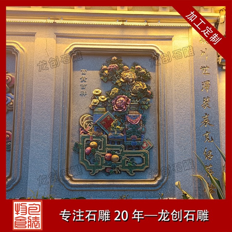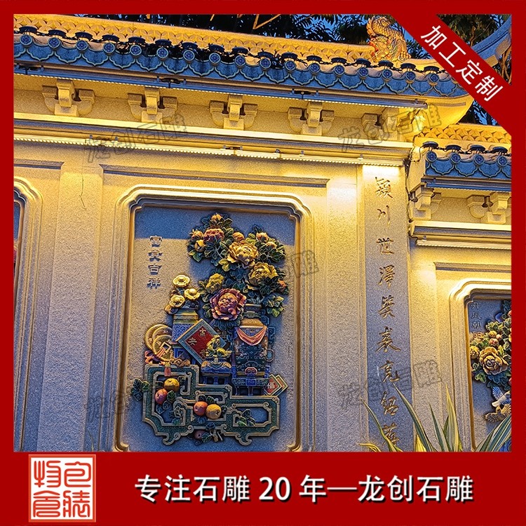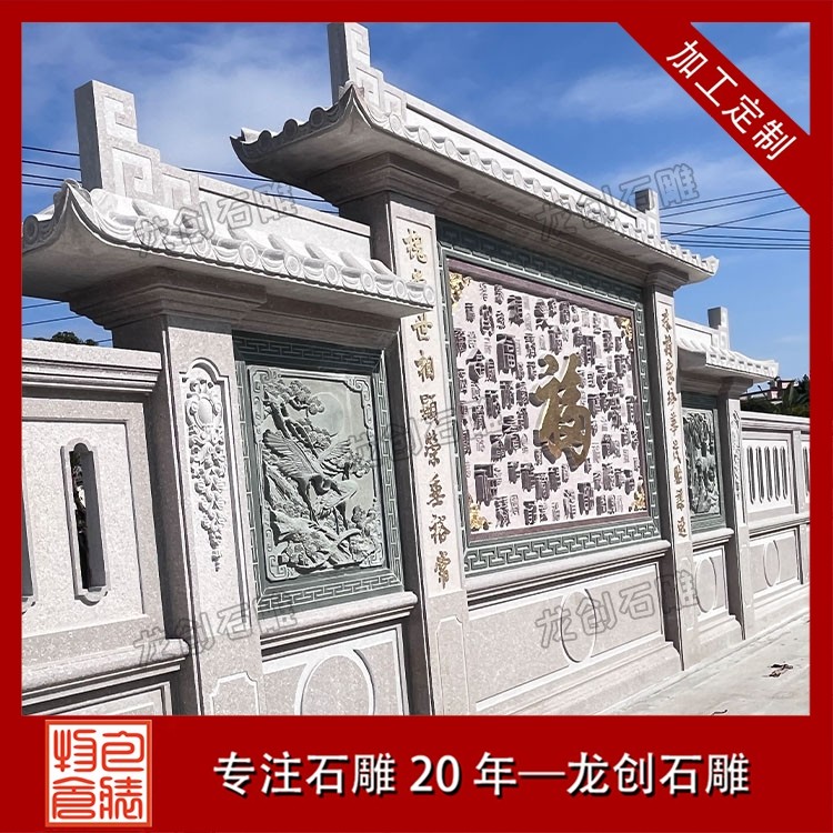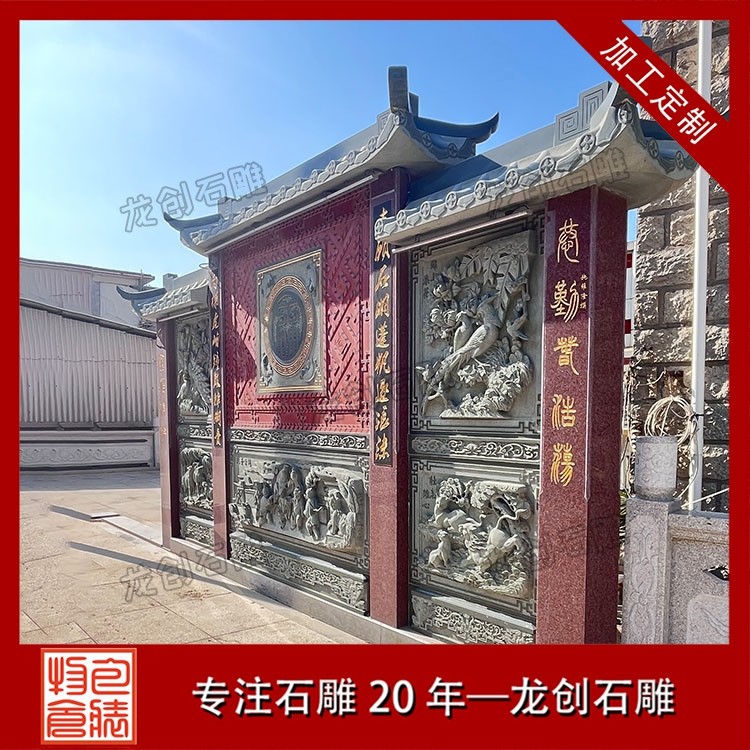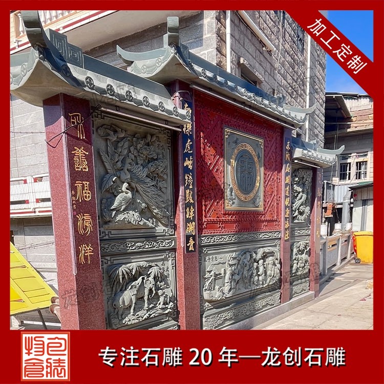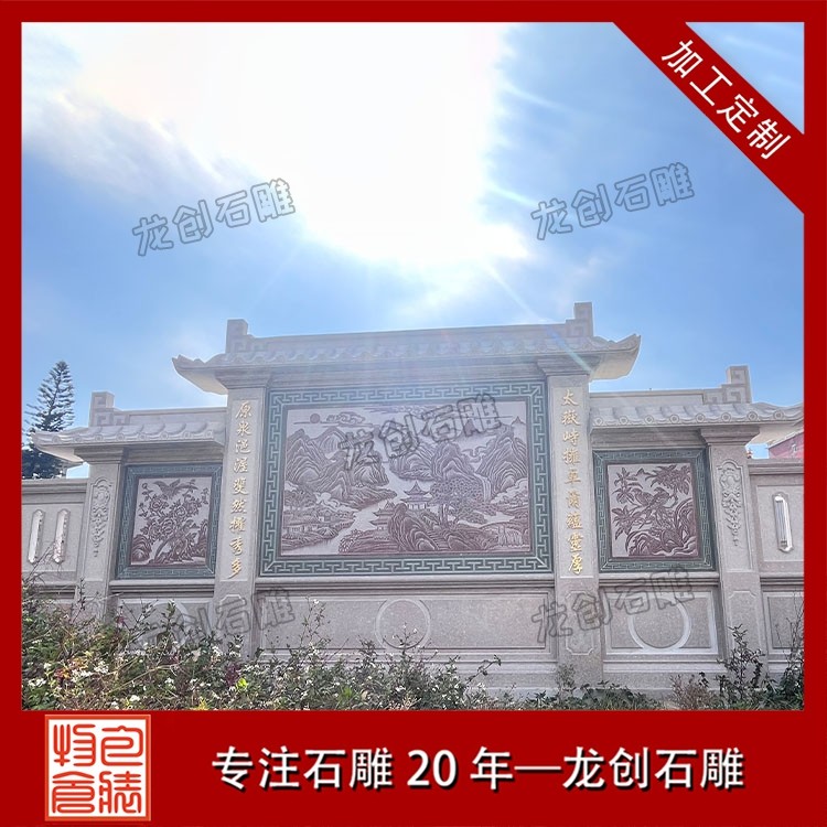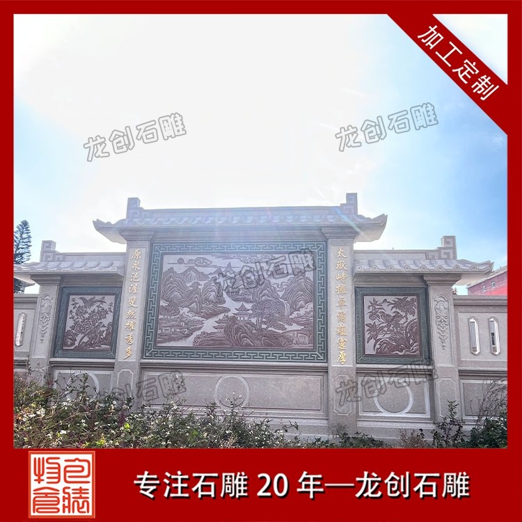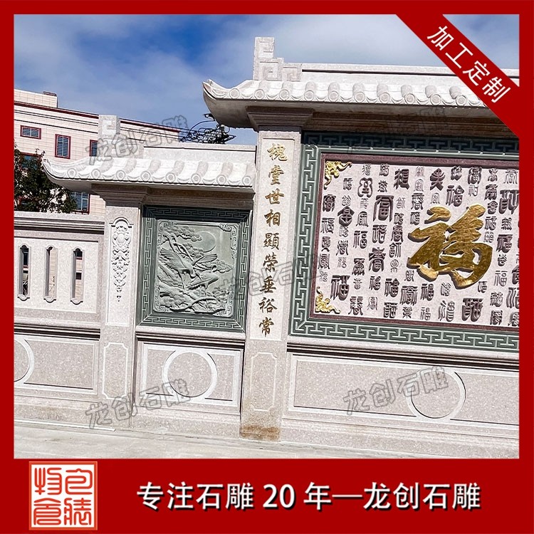 其一,視覺層次感突出,打造庭院的驚艷。作為庭院大門口的視覺焦點,石雕照壁浮雕以立體雕刻工藝打破平面墻面的單調(diào),線條流暢的浮雕紋樣與天然石材的質(zhì)感相得益彰,無論是簡約大氣的線條設(shè)計,還是繁復(fù)精美的吉祥圖案,都能瞬間提升庭院大門口的整體檔次,讓到訪者直觀感受到主人的審美格調(diào)與家族底蘊。