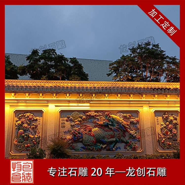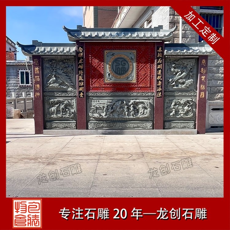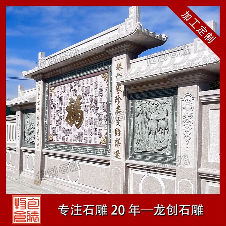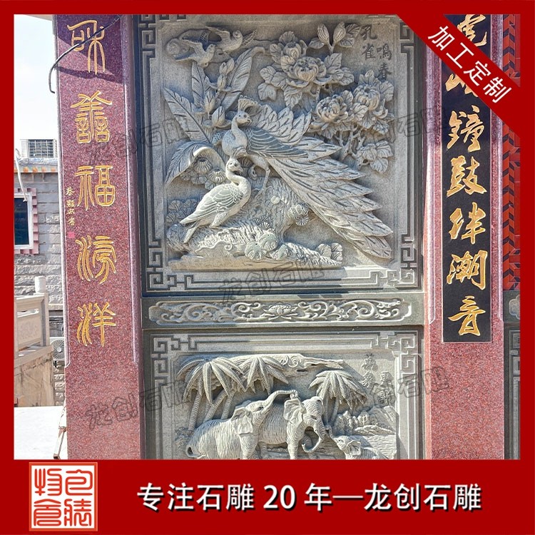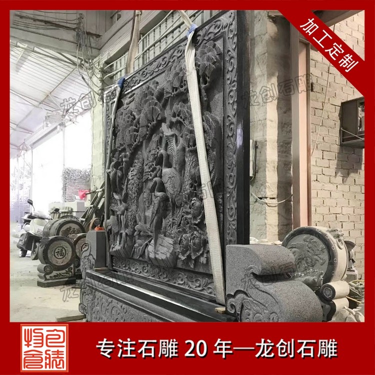 其二,意境含蓄內(nèi)斂,彰顯中式人文情懷。中式庭院講究“藏而不露”,石雕照壁浮雕恰好契合這一美學(xué)理念,既巧妙遮擋院內(nèi)景致,避免“開門見山”的直白,又以浮雕紋樣傳遞美好期許——龍鳳呈祥彰顯尊貴,松鶴延年寄托福壽,鹿竹同春寓意平安,山水花鳥展現(xiàn)自然之美,讓冰冷的石材承載起溫暖的文化內(nèi)涵與家族期盼。