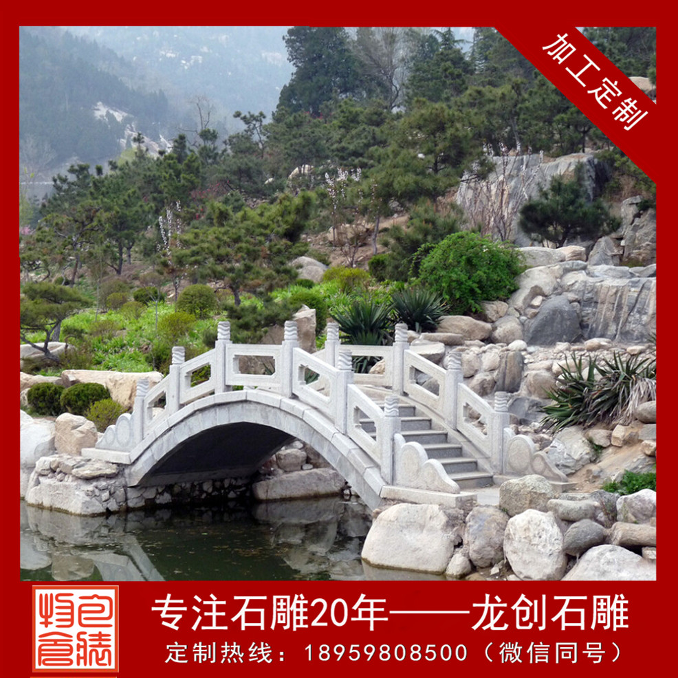 石拱橋欄桿一般安裝在寺院、風景區、別墅、小區等場所。而惠安龍創石雕工藝有限公司雕琢設計的石拱橋欄桿能更大化更全面的給人們帶來吉利。在石拱橋欄桿上我們常見的吉利圖畫有滿意云紋,標志著吉利滿意;卍字紋、擬日紋,標志著萬德吉利;蝙蝠紋、荷花紋、祥云紋、蔓草紋等吉利圖案。